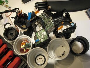 My old faithful Fuji Finepix 602 Zoom camera was injured a while back and quit working, but I found a website with great pictures and explanations for disassembly, so I have taken it apart into little pieces, repaired the defect, and now am ready to put it back together. Wish me luck.